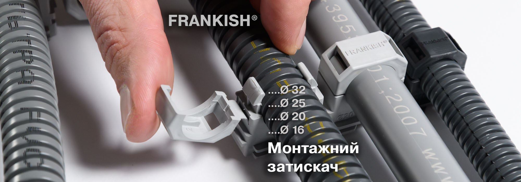Приклади продукції Читати далі Монтажний затискач чорний FRANKISH® Ø 16–20–25–32 Читати далі Підвіконня 250 мм Читати далі Труба армована спіральна FRANKISH® Ø 20 чорна Читати далі Гофротруба FRANKISH® Ø 16 Дослідні випробування Гофротруба ПВХ та армована спіральна — правила монтажу Кабель–канал ПВХ — правила монтажу Пластикові підвіконня — правила монтажу. ПошукПошук