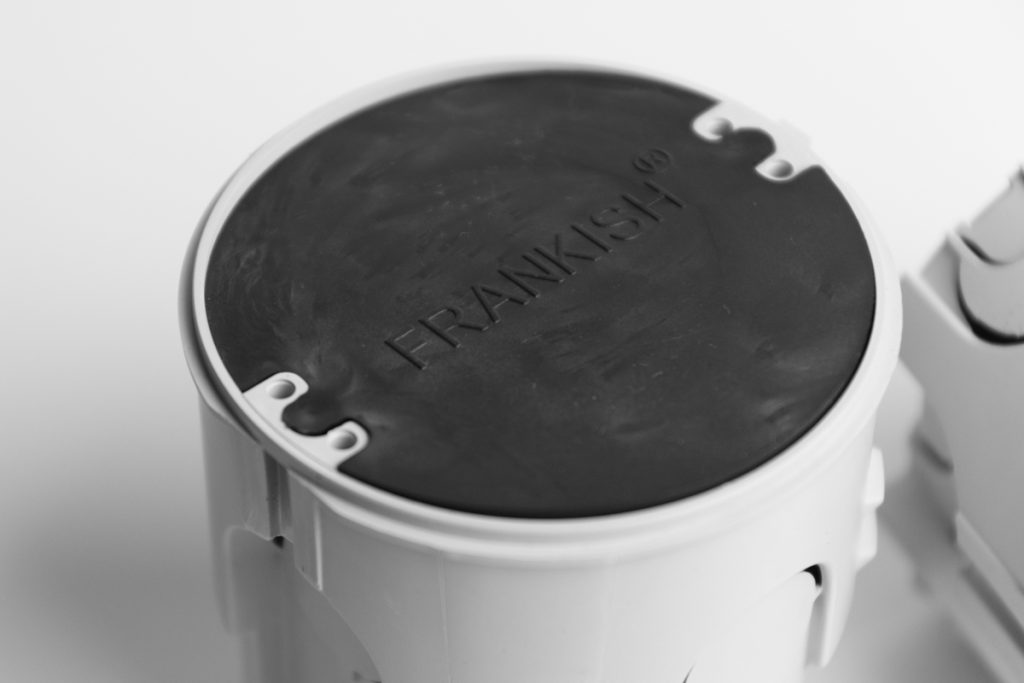 Якісні підрозетники (установчі коробки) FRANKISH® для монтажу у бетонних, цегляних та кам’яних суцільних стінах. Відмінною особливістю підрозетників FRANKISH® є те, що вони виготовлені з ПВХ (полівінілхлорид), тому не підтримують горіння.