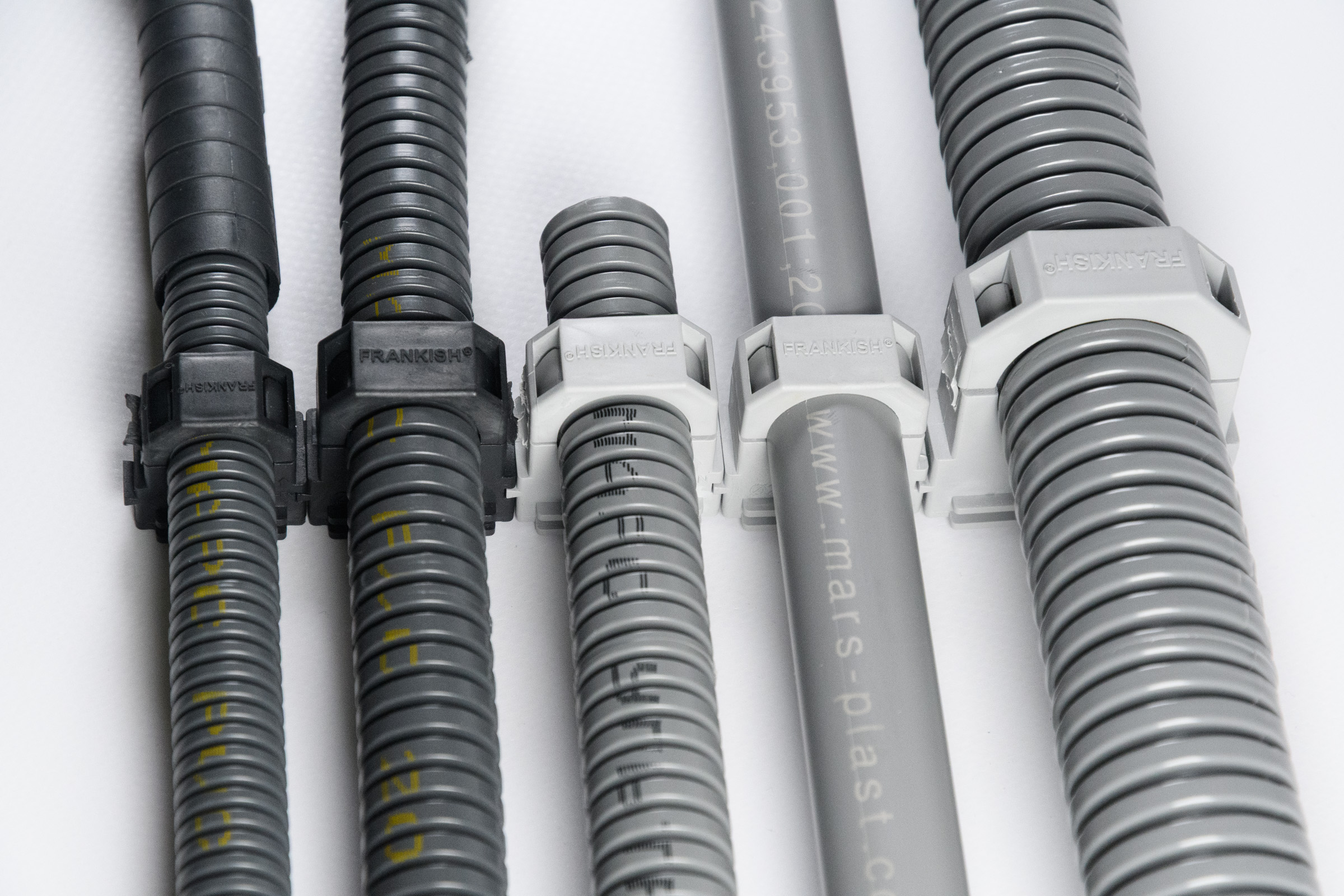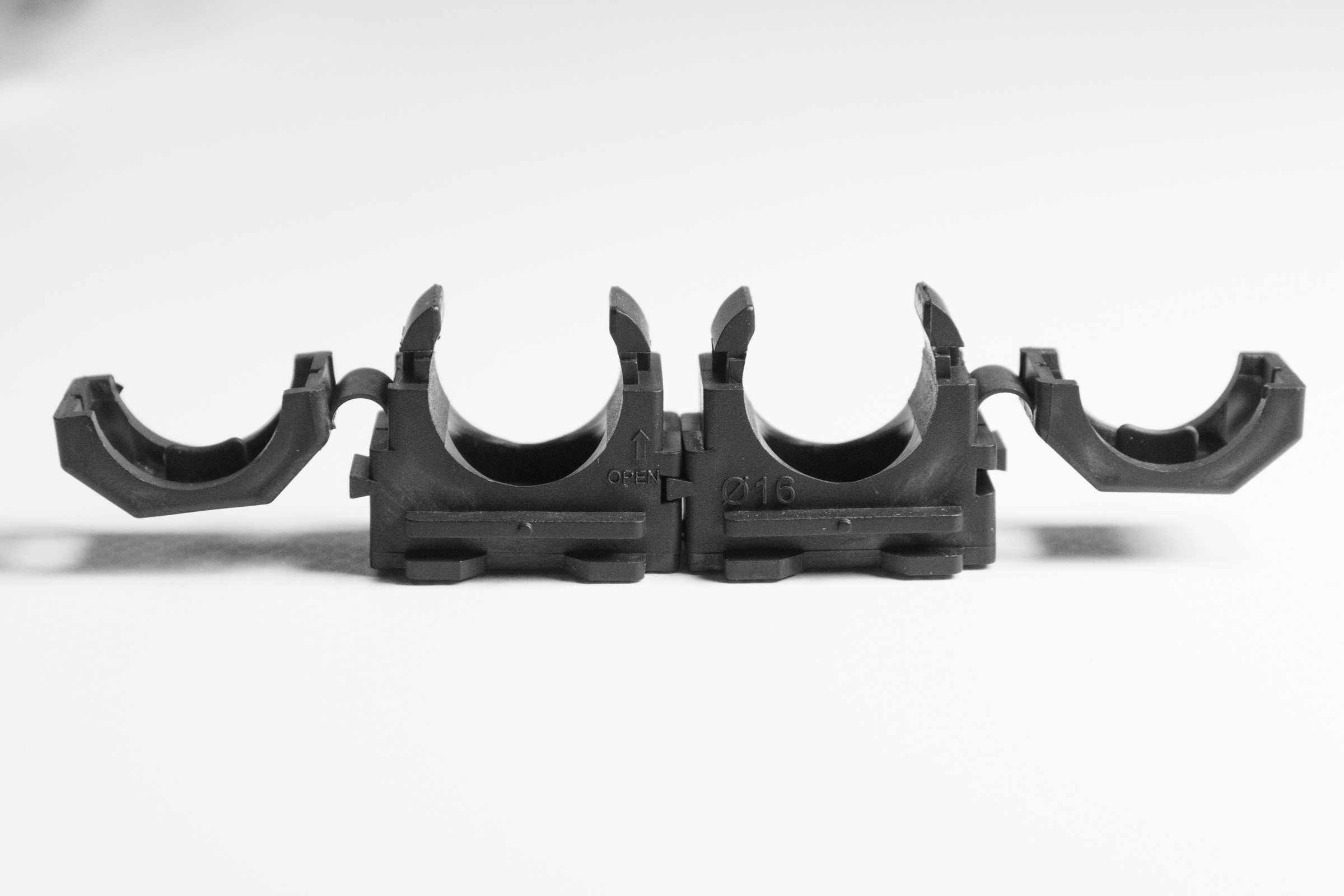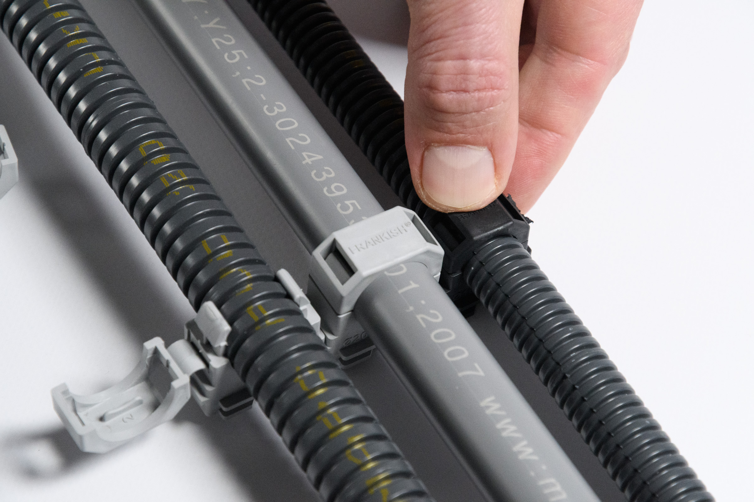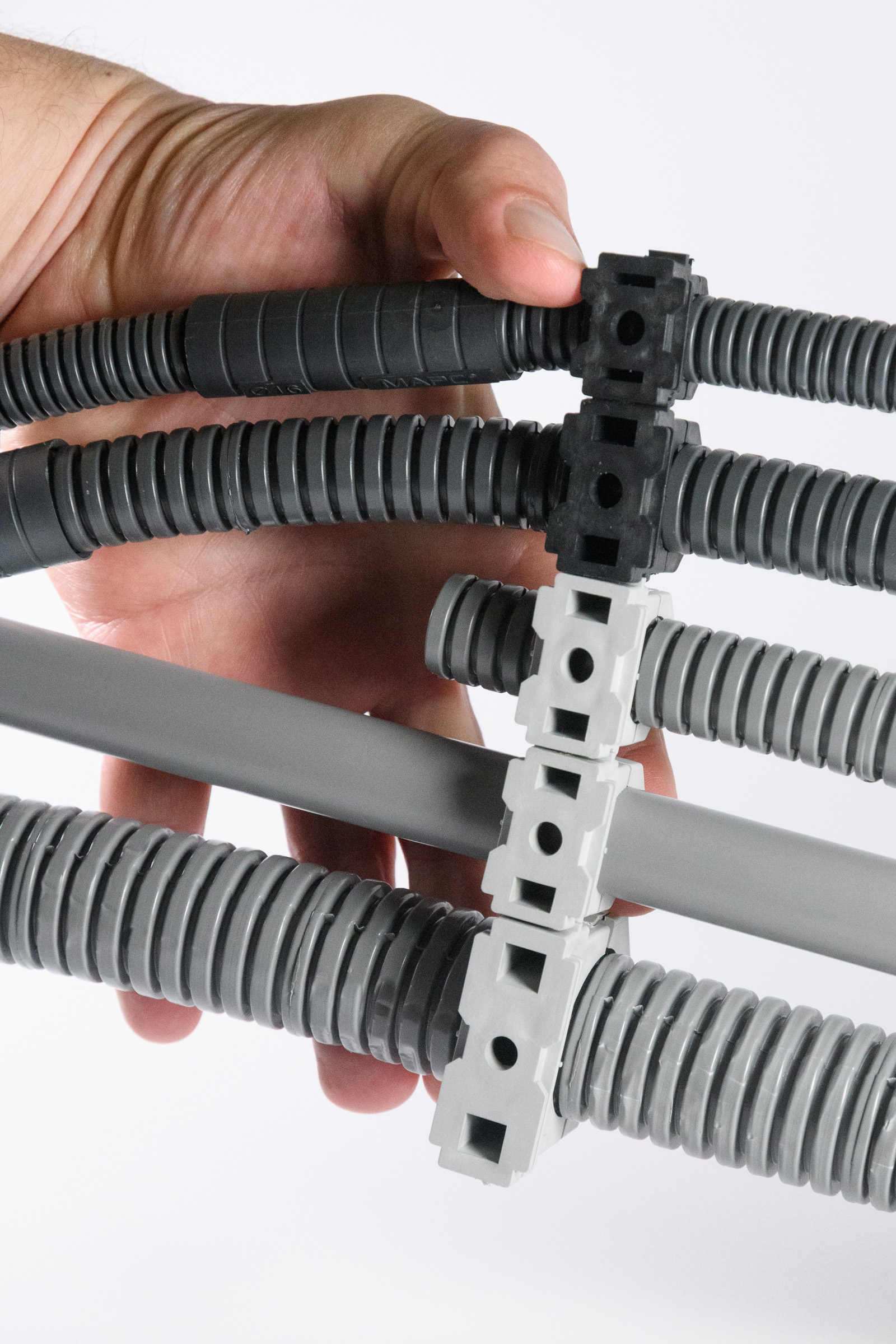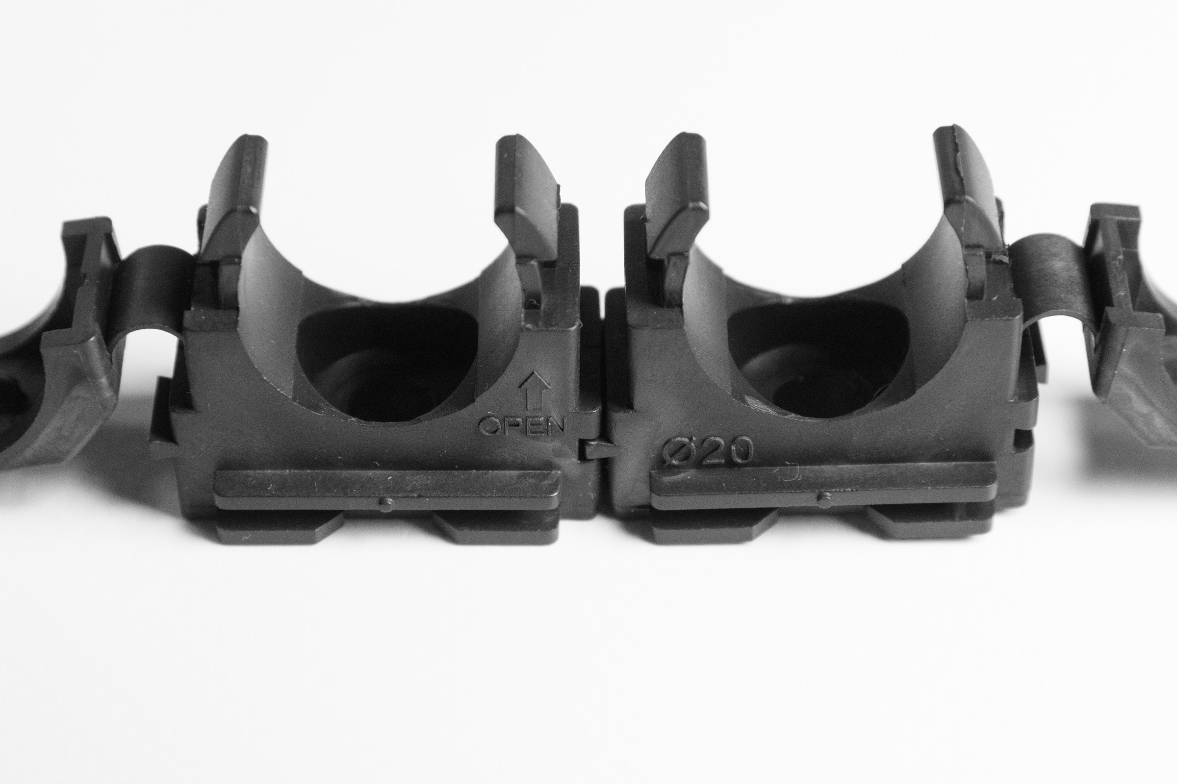 затискачі будь–яких розмірів (16, 20, 25 або 32 мм) легко збираються в один рядок — для якісного та естетичного монтажу