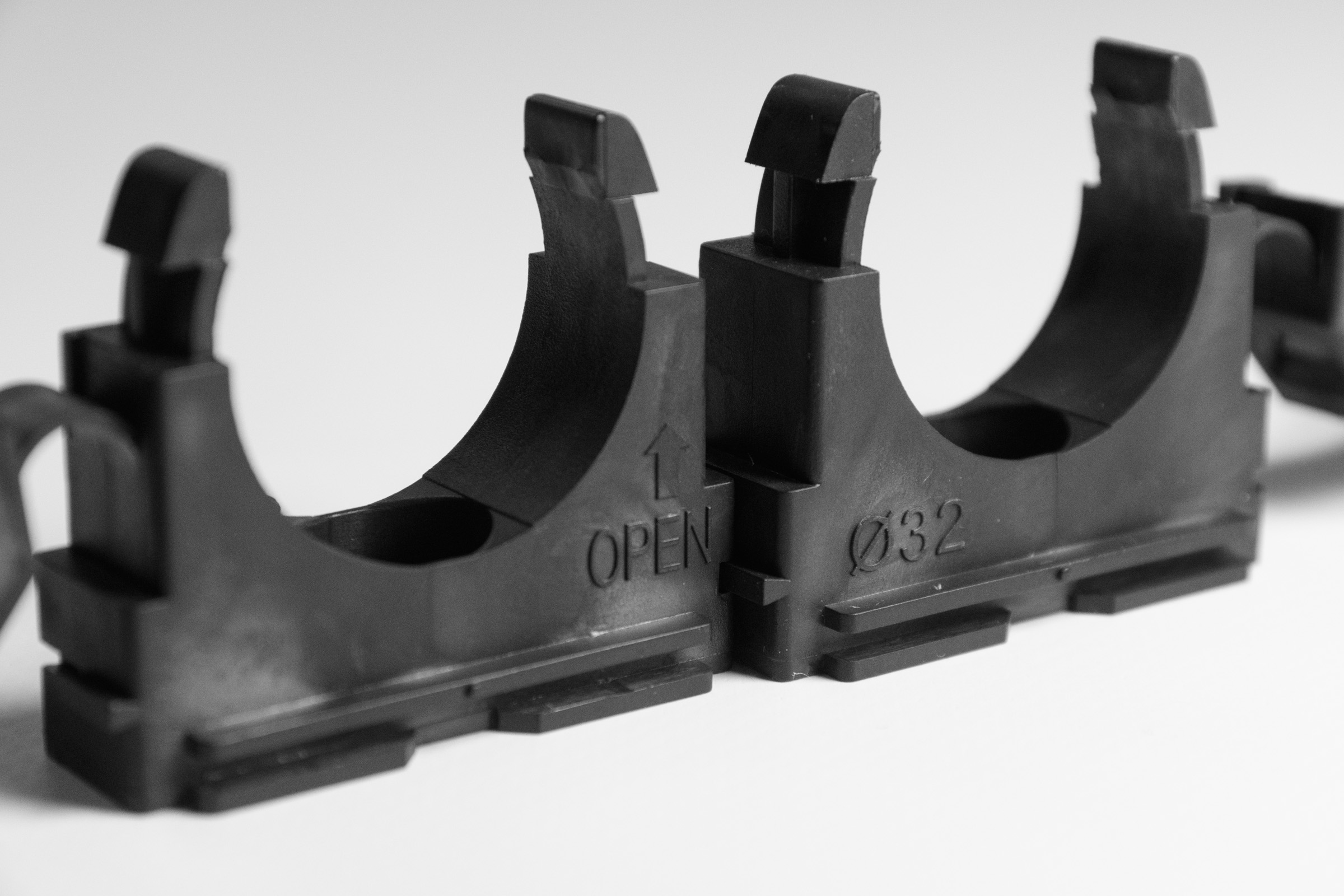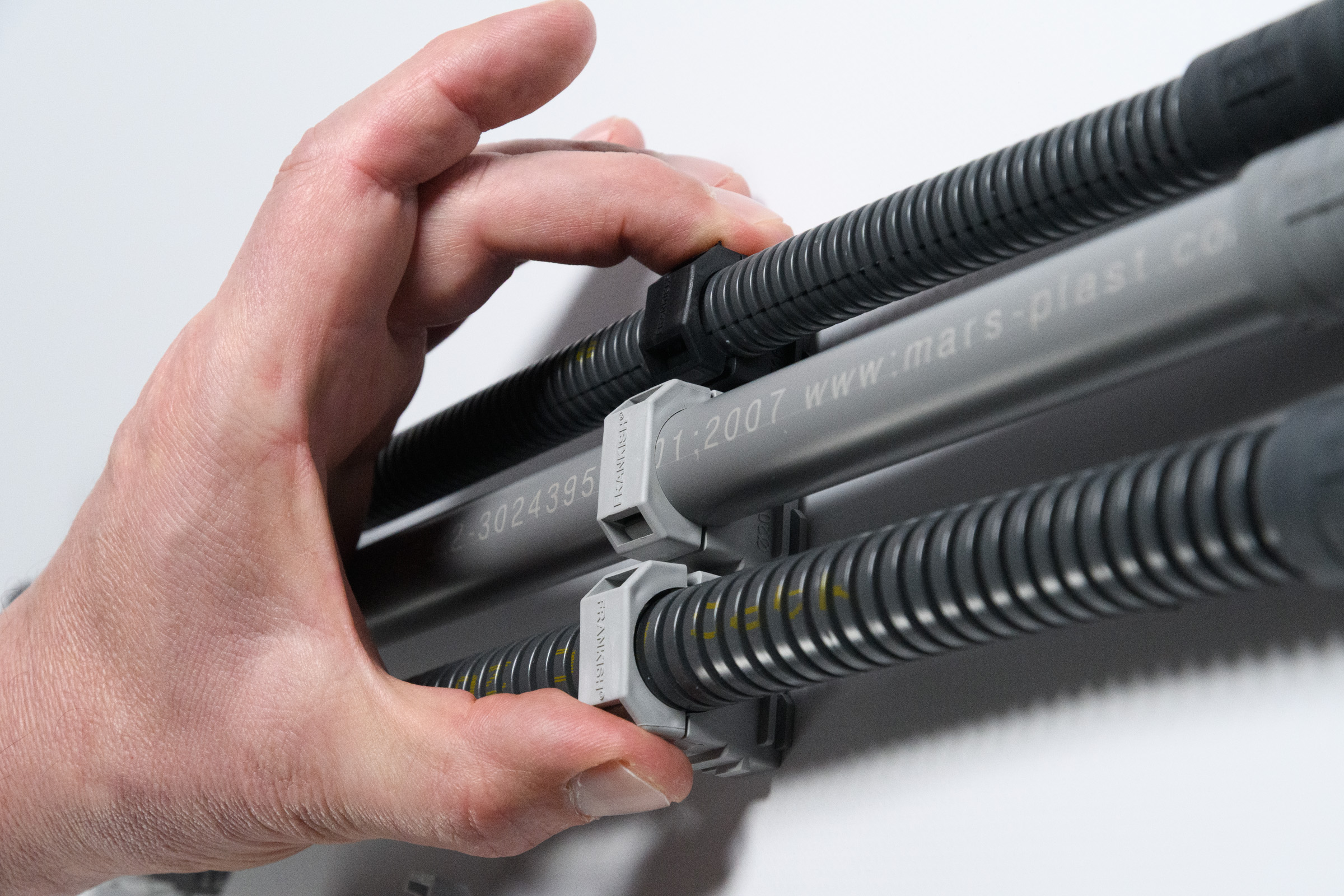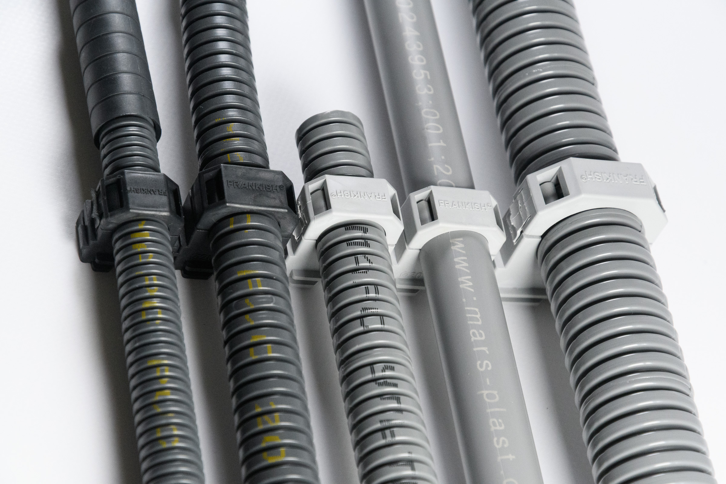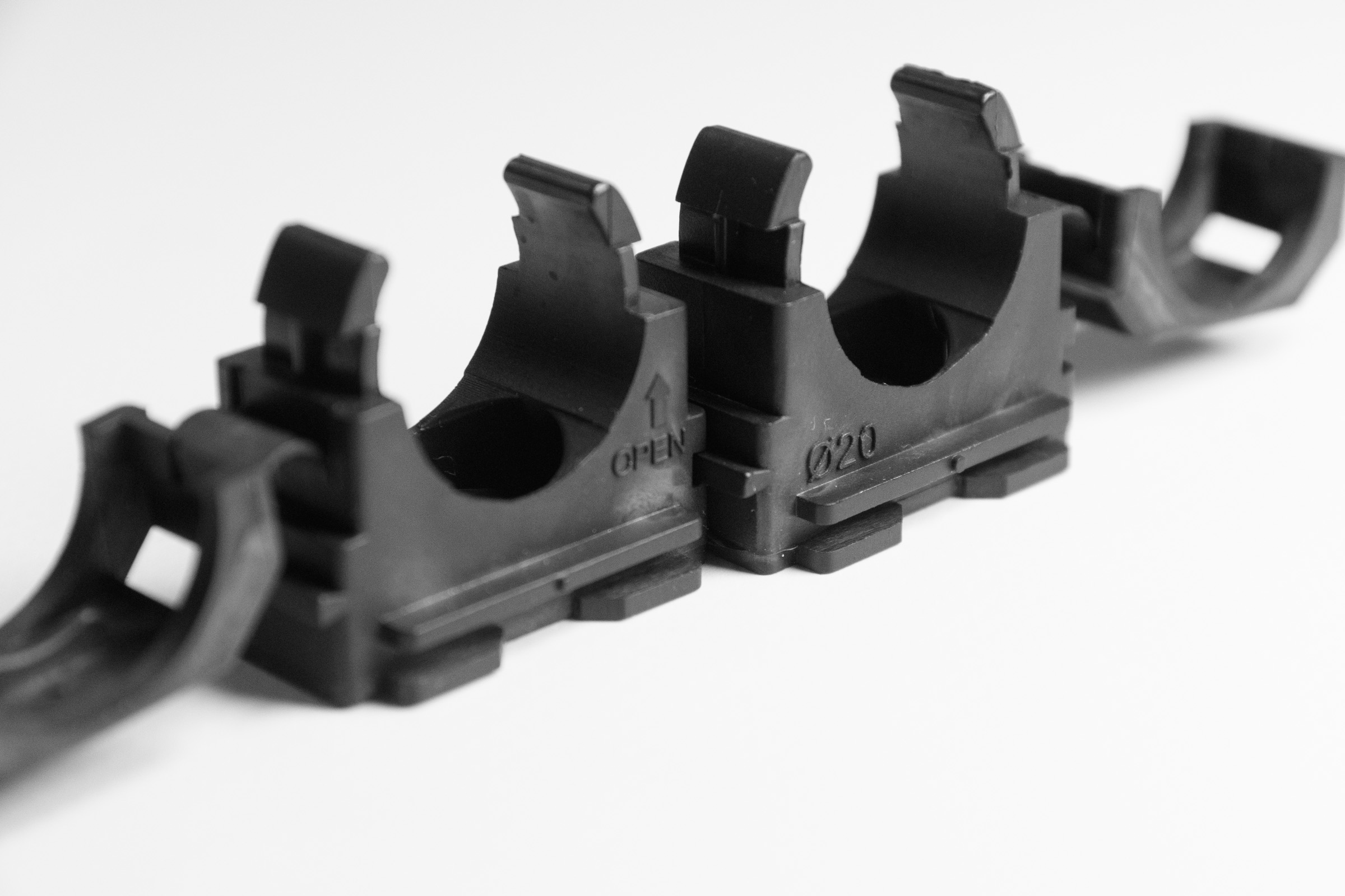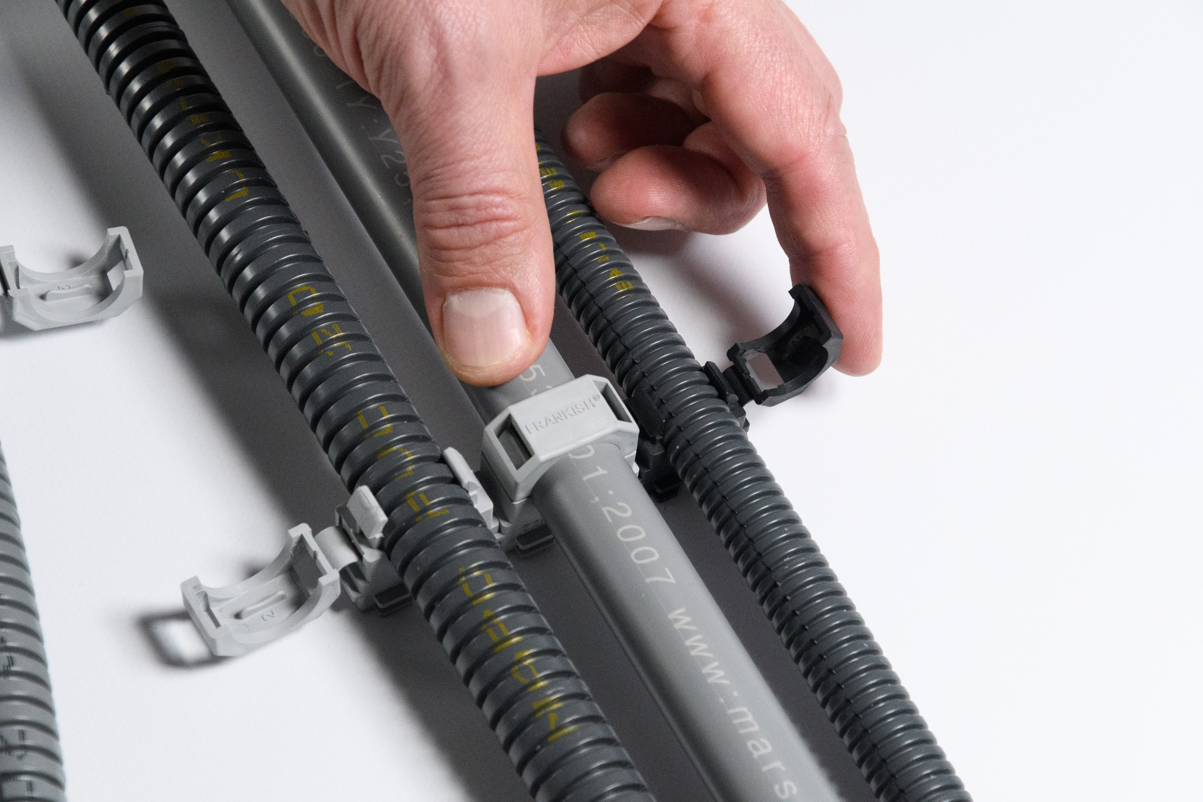 затискачі будь–яких розмірів (16, 20, 25 або 32 мм) легко збираються в один рядок — для якісного та естетичного монтажу