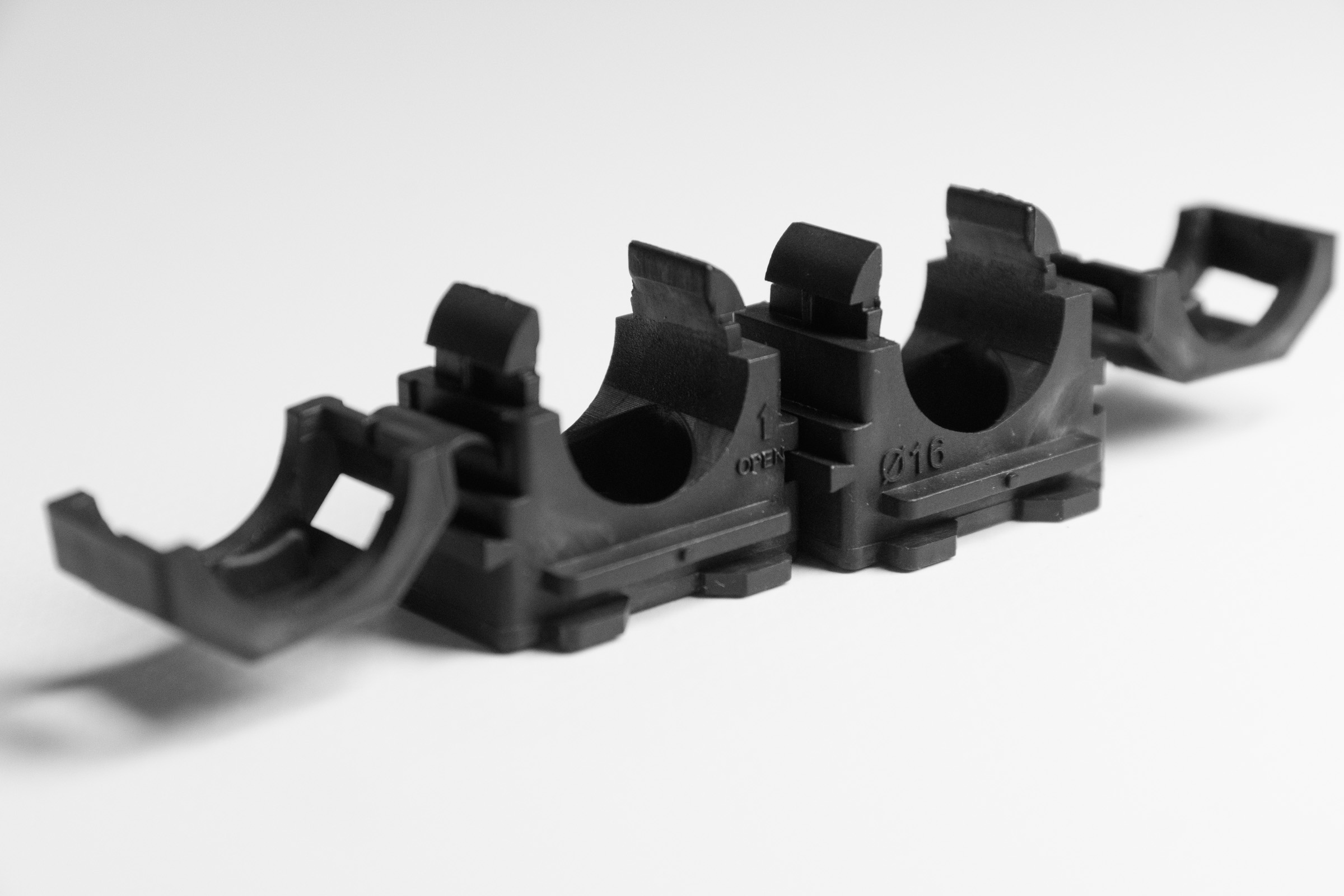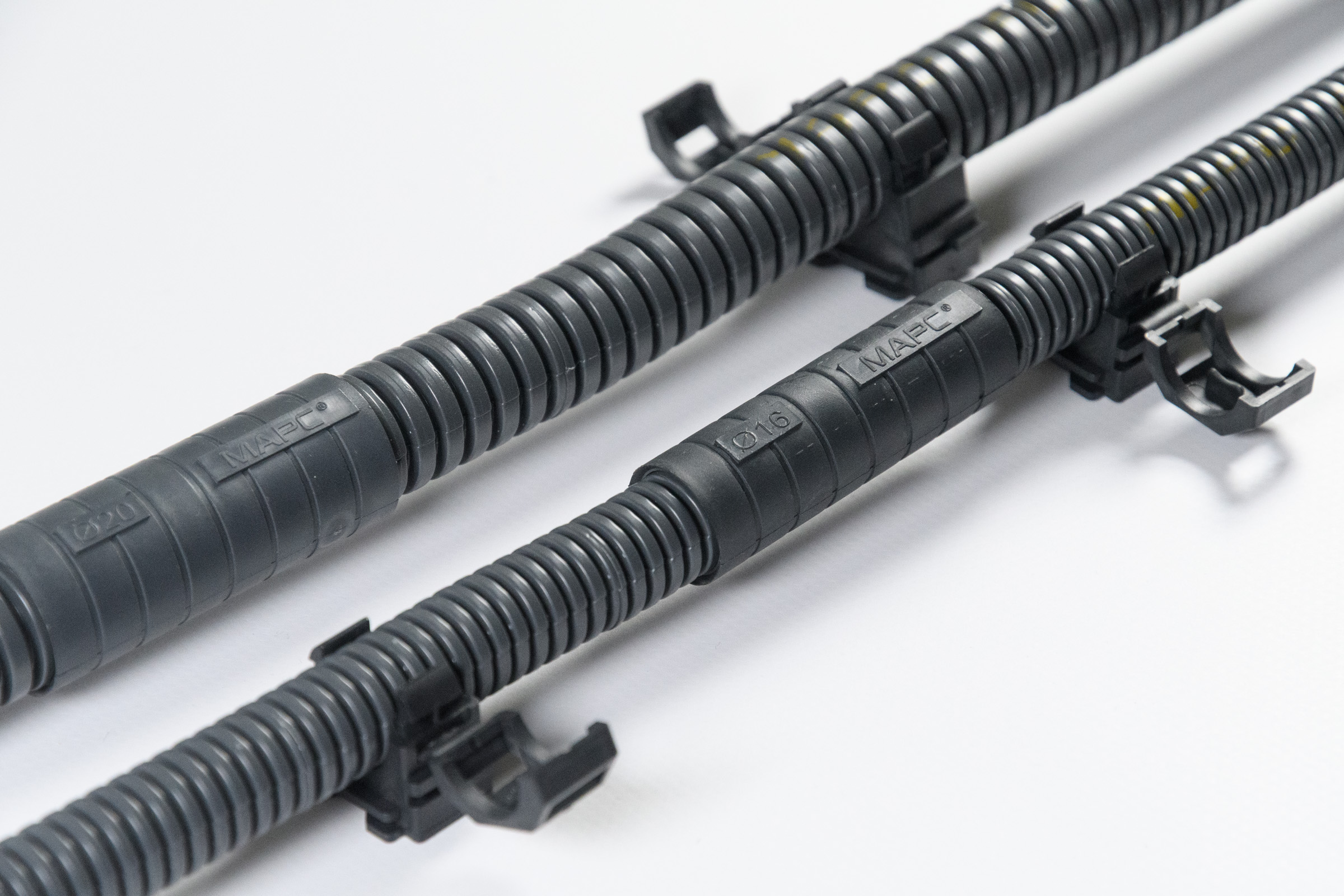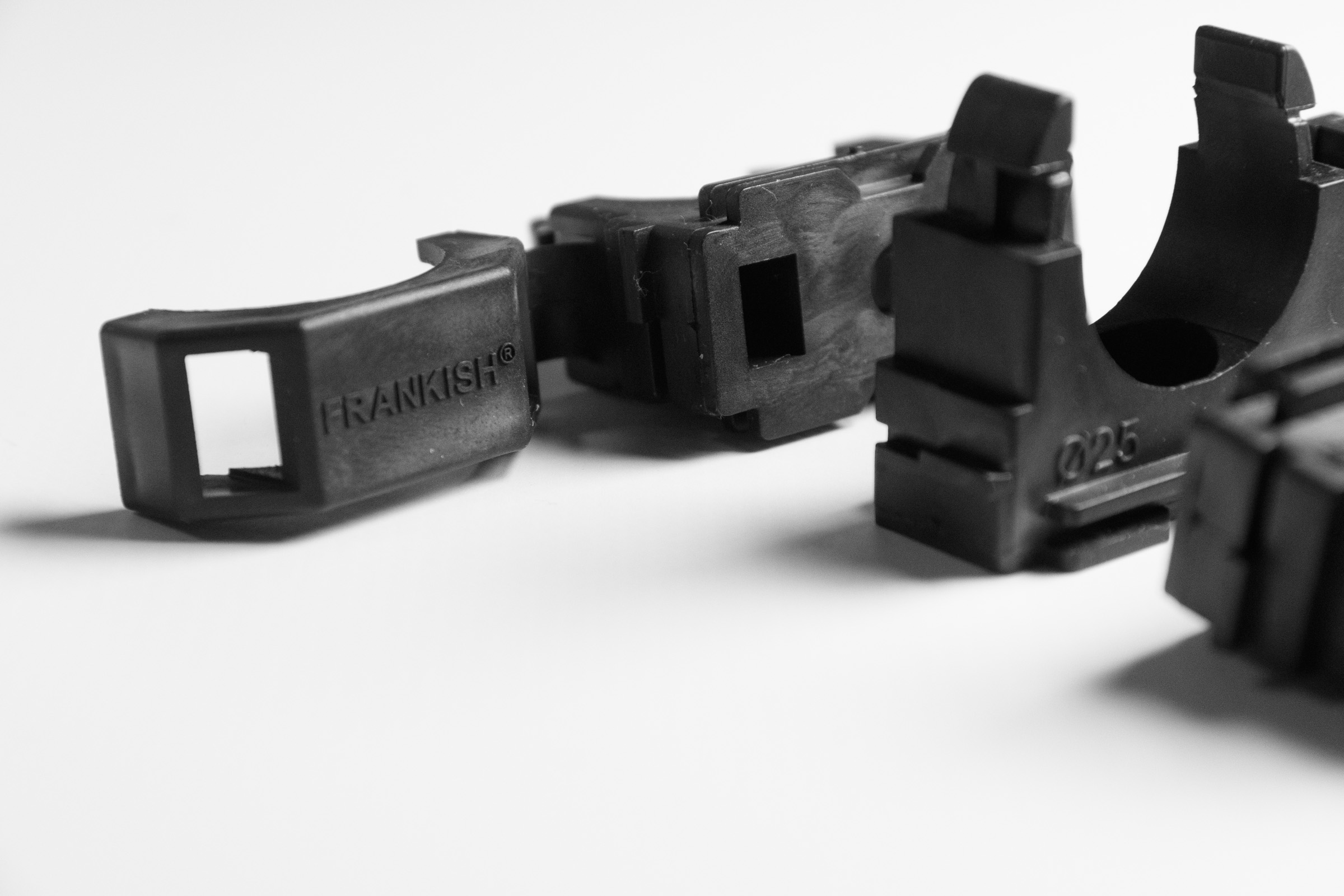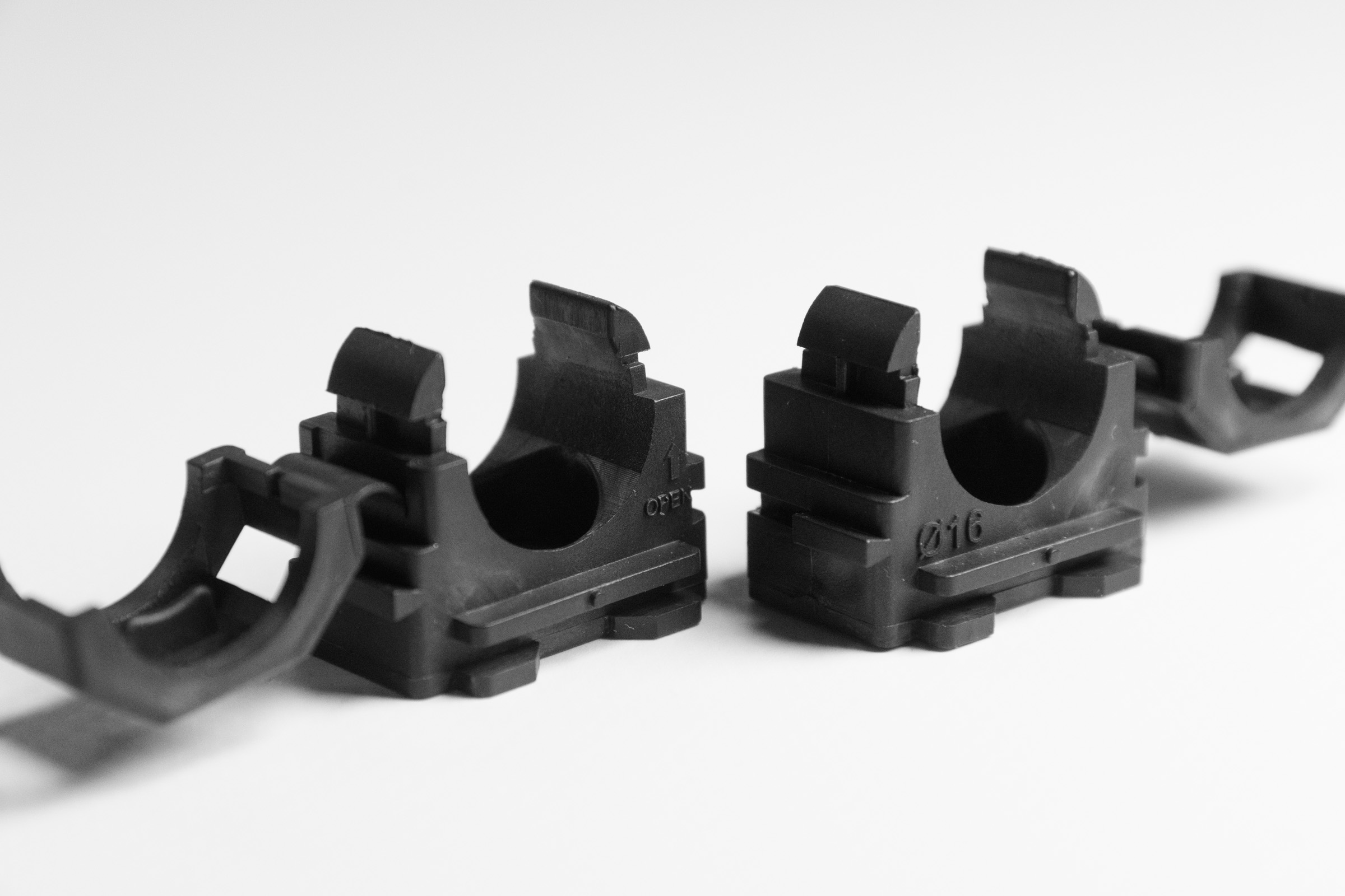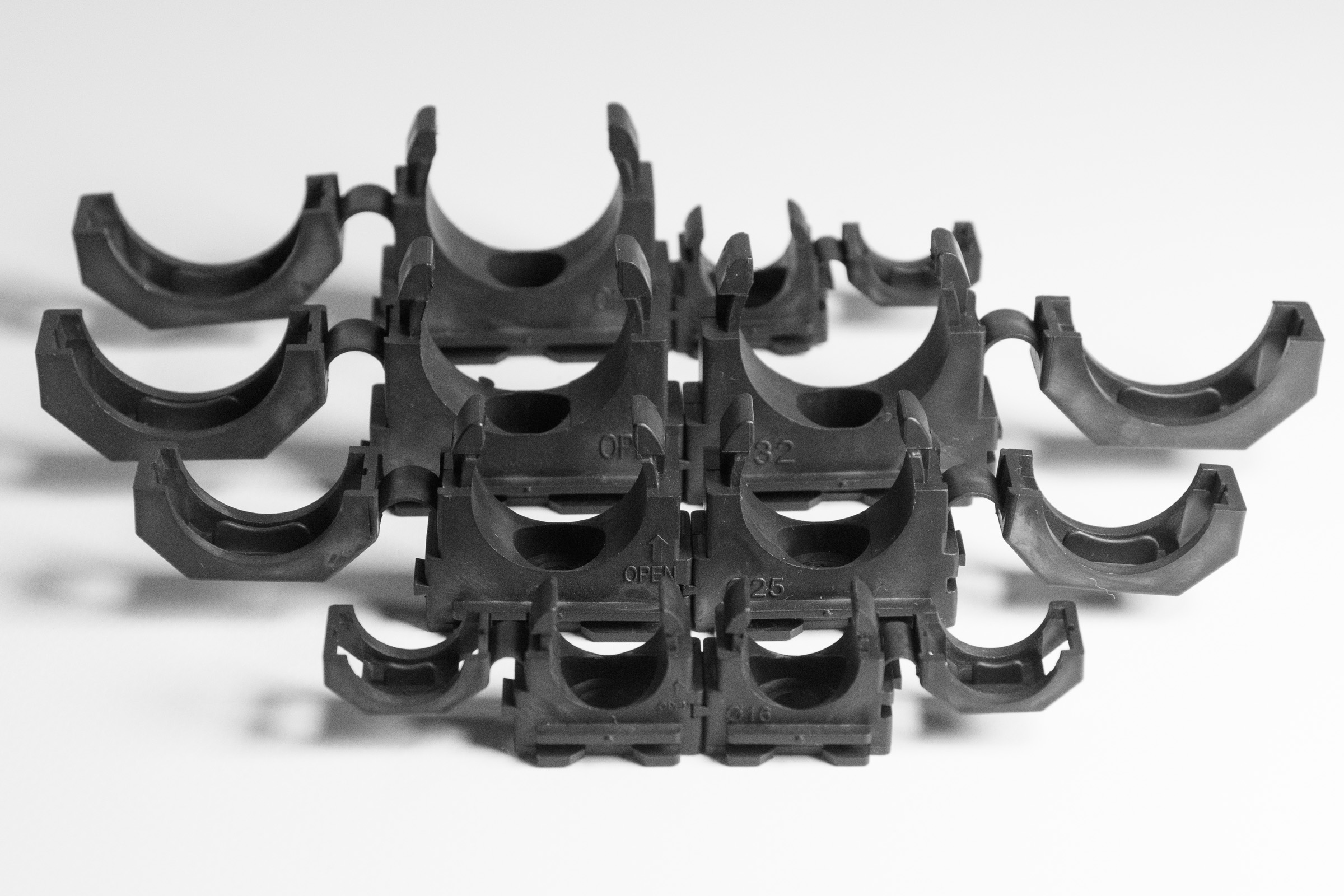 затискачі будь–яких розмірів (16, 20, 25 або 32 мм) легко збираються в один рядок — для якісного та естетичного монтажу