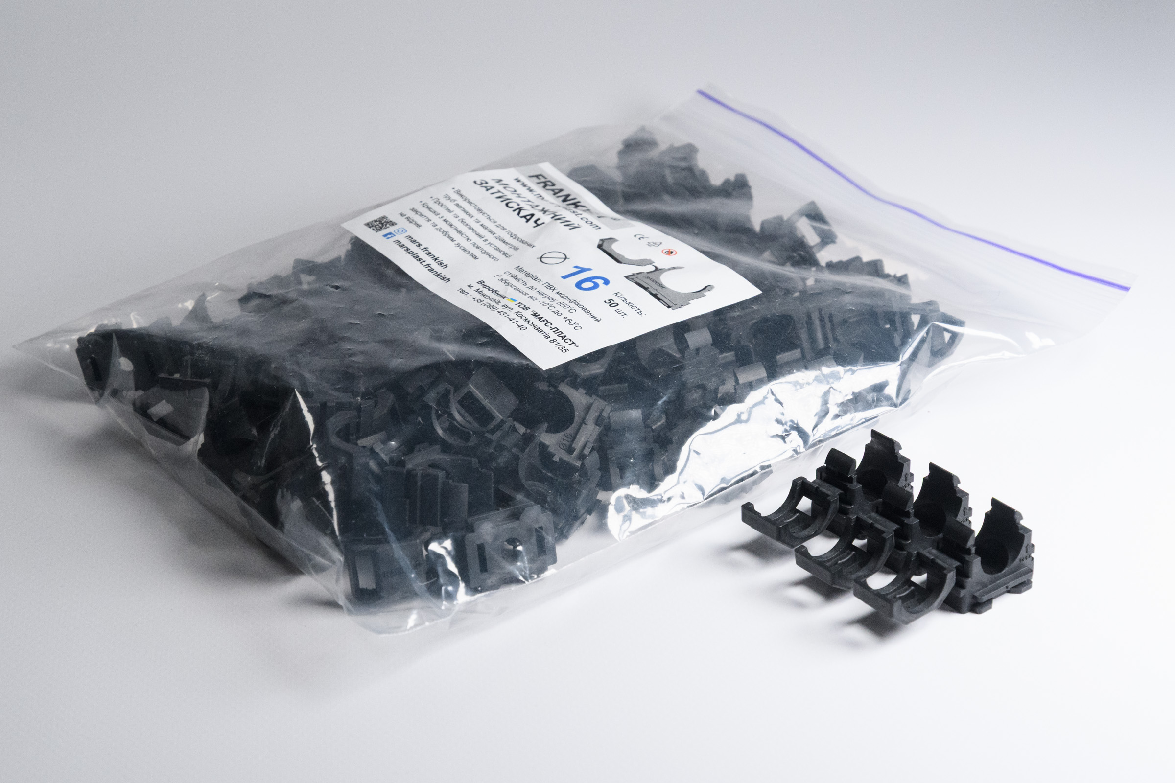 - однаковий розмір отвору в затискачах будь–яких розмірів (16, 20, 25 або 32 мм) під болт/шуруп/саморіз діаметром до 5 мм з діаметром капелюшка до 12 мм